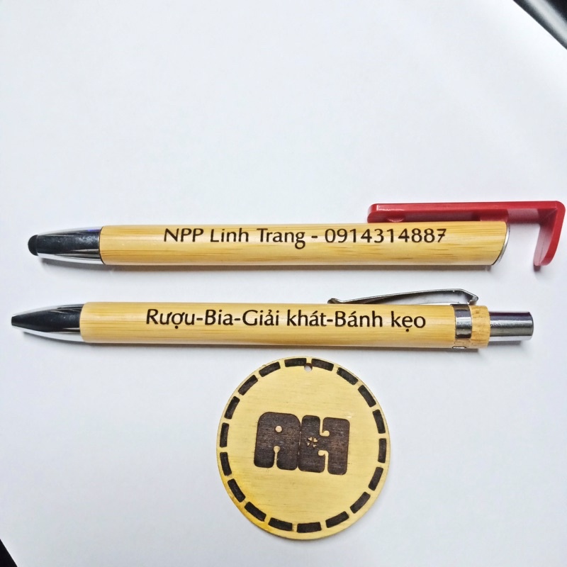 Bút tre 3 in 1, cảm ứng, đế điện thoại, viết, khắc tên theo yêu cầu