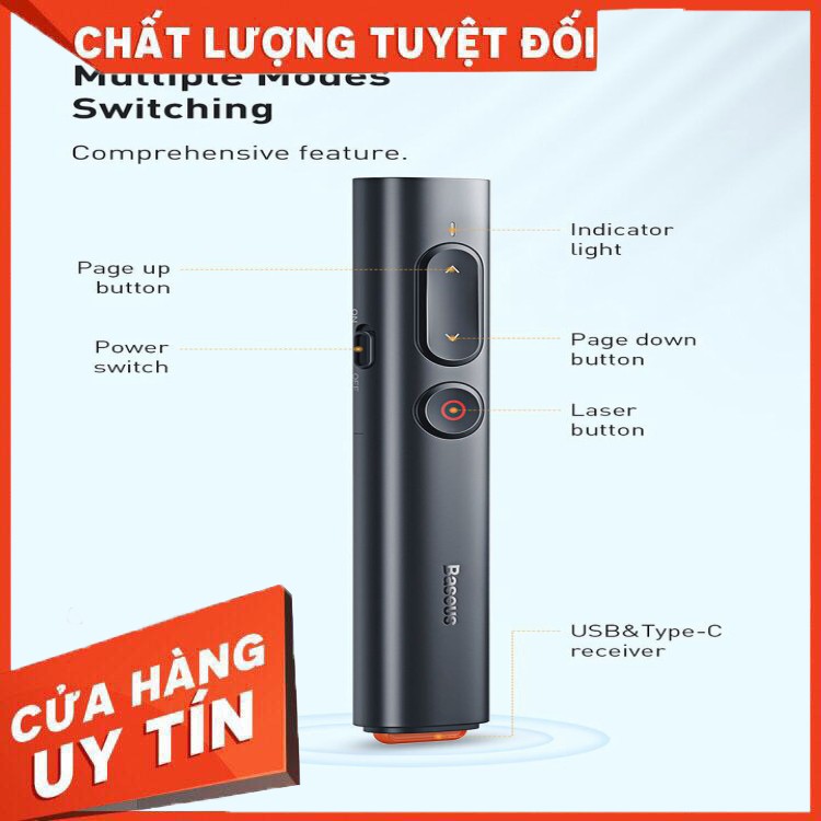 Bút trình chiếu Baseus nhỏ gọn đa năng cắm 2 cổng usb/ C chiếu tầm xa rõ nét ACFYB