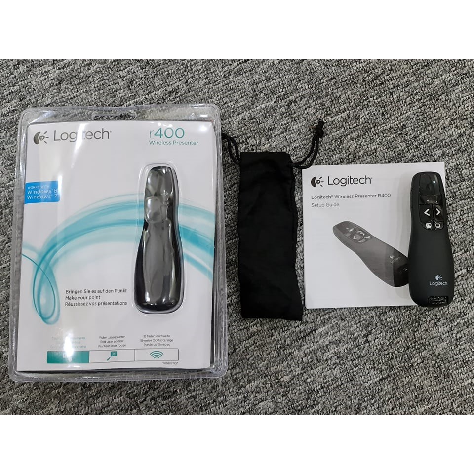 Bút trình chiếu Logitech Wireless Presenter R400 (Đen)Với những người làm công việc thường xuyên phải thuyết trình nói trước đám đông, hội nghị, hội thảo thì bút trình chiếu là một sản phẩm không thể thiếu khi đi công tác và làm việc. Bút trình chiếu giúp cho người thuyết trình chủ động trong việc điều khiển slide khi trình chiếu, đồng thời rất tiện khi chỉ các điểm nhấn trên màn hình máy chiếu.