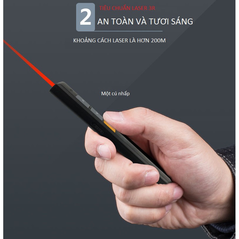 +1 nút điều chỉnh laser: con trỏ laser màu đỏ để giúp người xem tập trung hơn và cùng giúp người trình bày nắm rõ được quá trình diễn giải cuả mình
