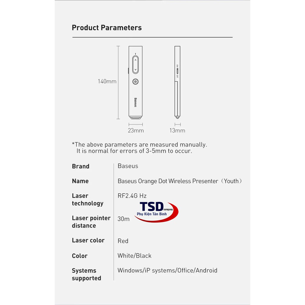 - Tên sản phẩm : Baseus Presenter Wireless Remote.