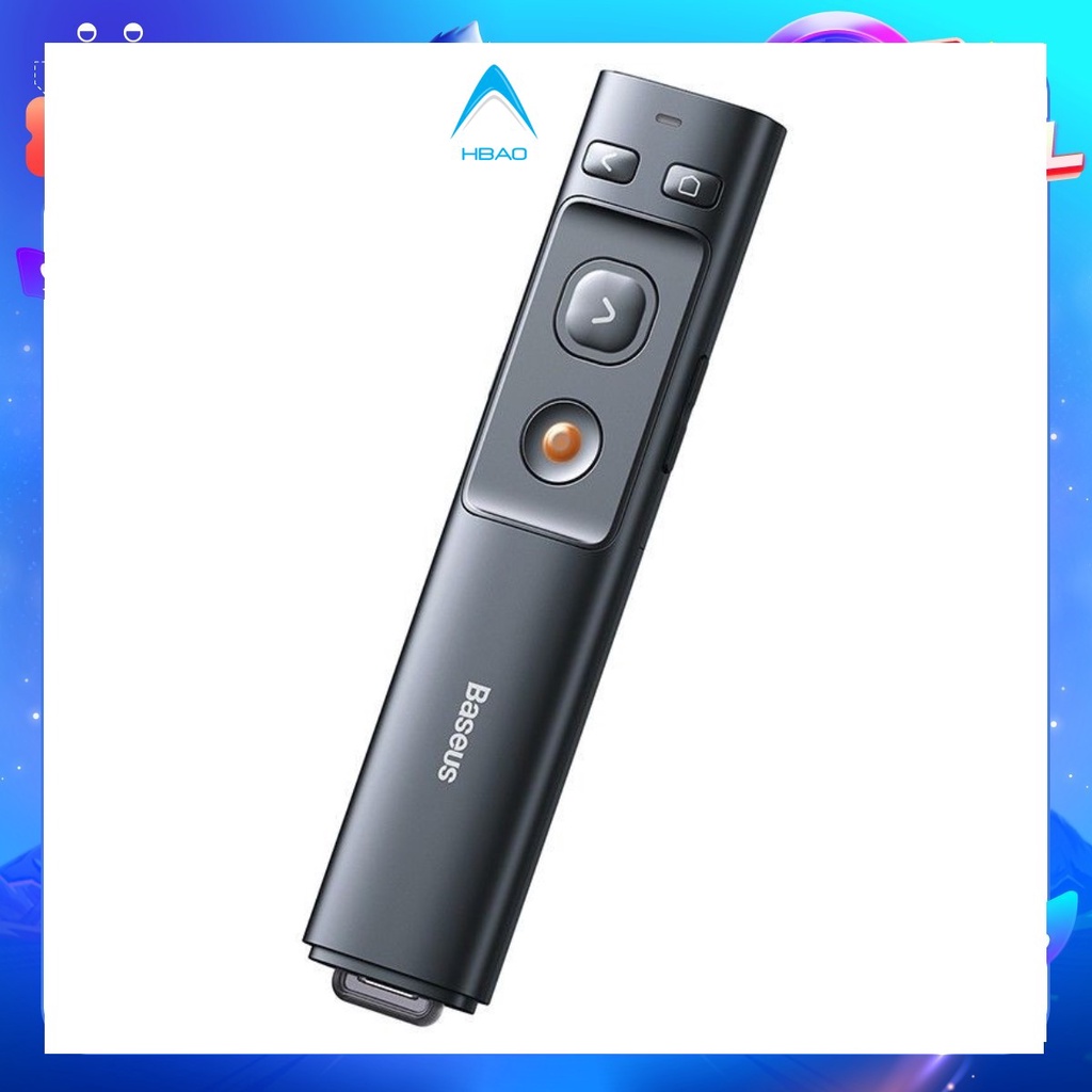- Bút trình chiếu Baseus Orange Dot Wireless Presenter là một trợ thủ đắc lực không thể thiếu dùng cho các buổi thuyết trình nhờ được trang bị nhiều tính năng tiện dụng, hưu ích và cần thiết như : bút laser (laser poiter), điều hướng slide cho Powerpoint (page up/down), nút mở liên kết, nút tạm dừng khi phát video , nút show/hide