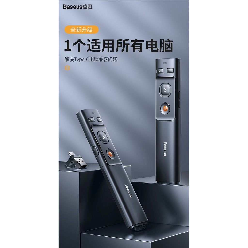 * Tính năng cơ bản Bút Laser trình chiếu Baseus Orange Dot Wireless Presenter cho Laptop/ Macbook (2.4Ghz USB/Type C Receiver, Wireless Remote Control, Red Laser Pointer/ Presenter):