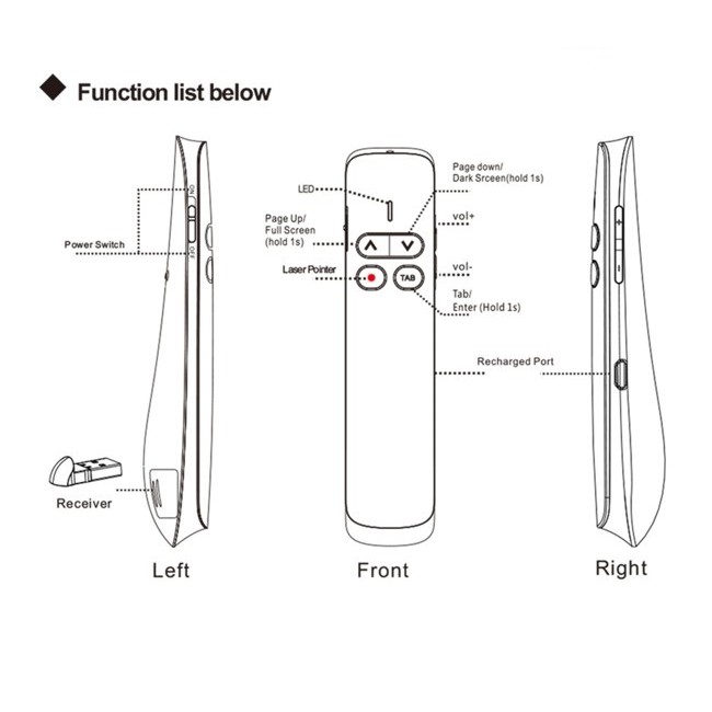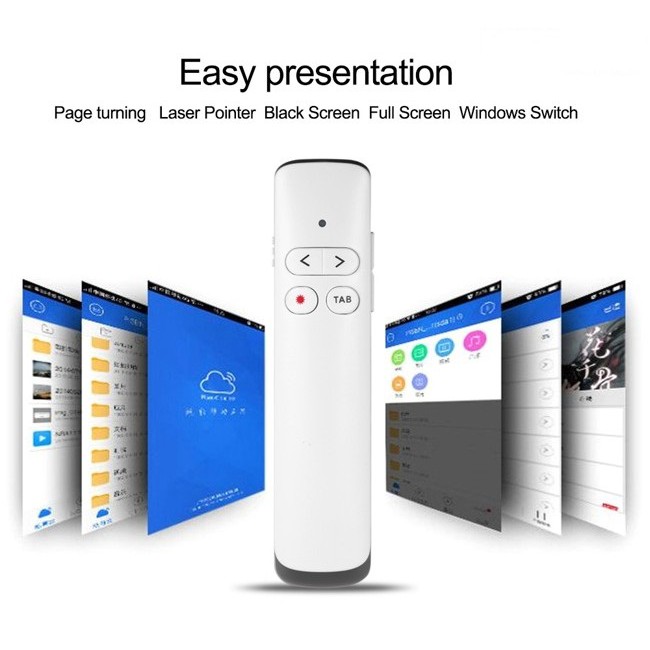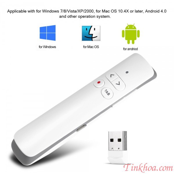 -Chức năng: Chức năng chỉ laser LED đỏ Điều khiển trang lên xuống, Lật trang trình chiếu Slide