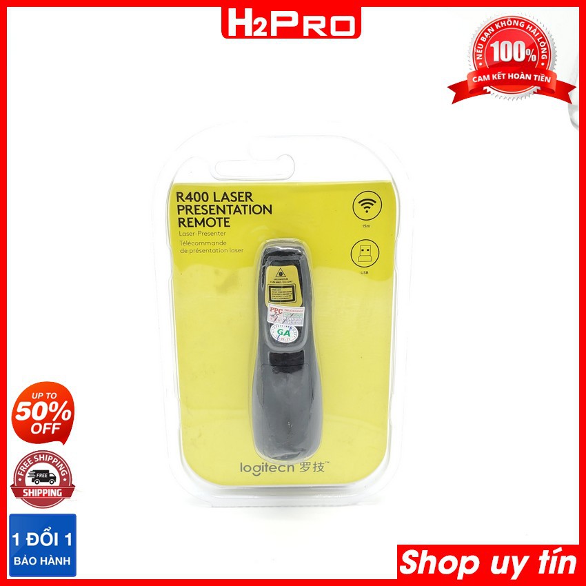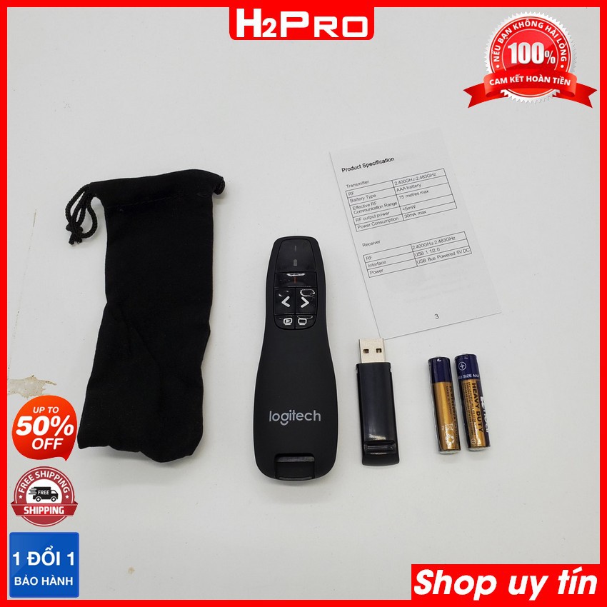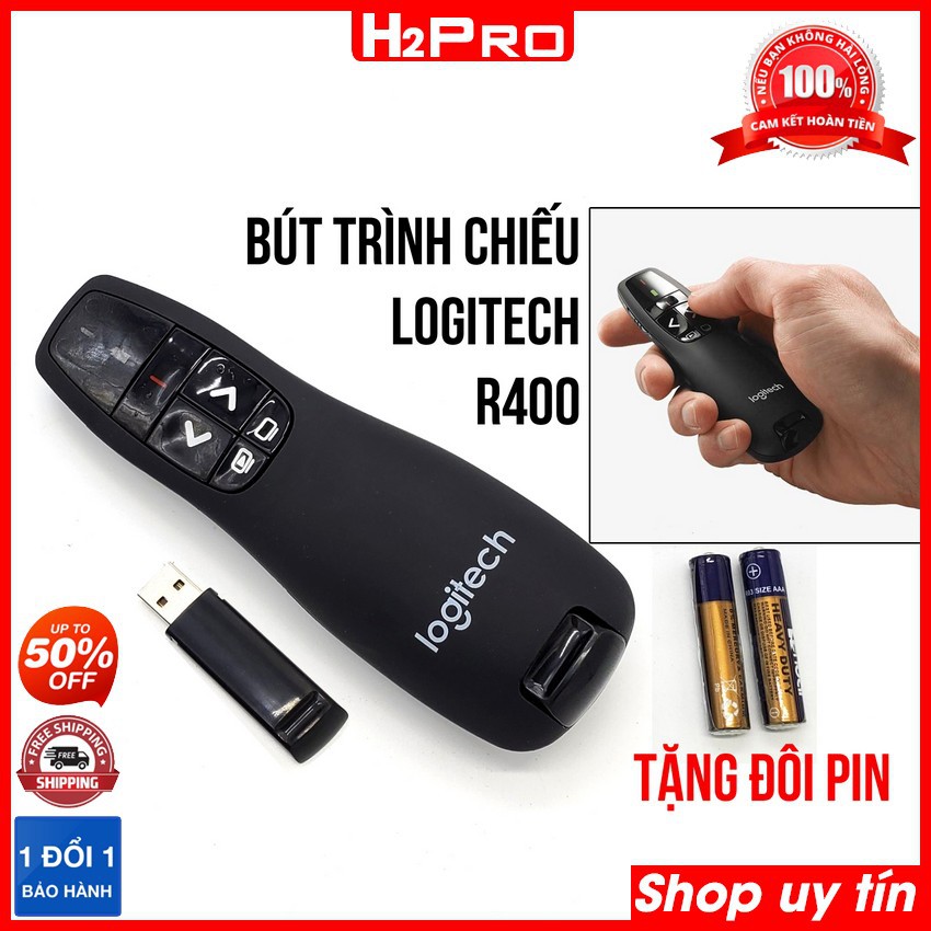 Bút trình chiếu laser Logitech R400 H2PRO, bắt sóng 15m. bút chỉ slide cho giáo viên (tặng đôi pin 20K)