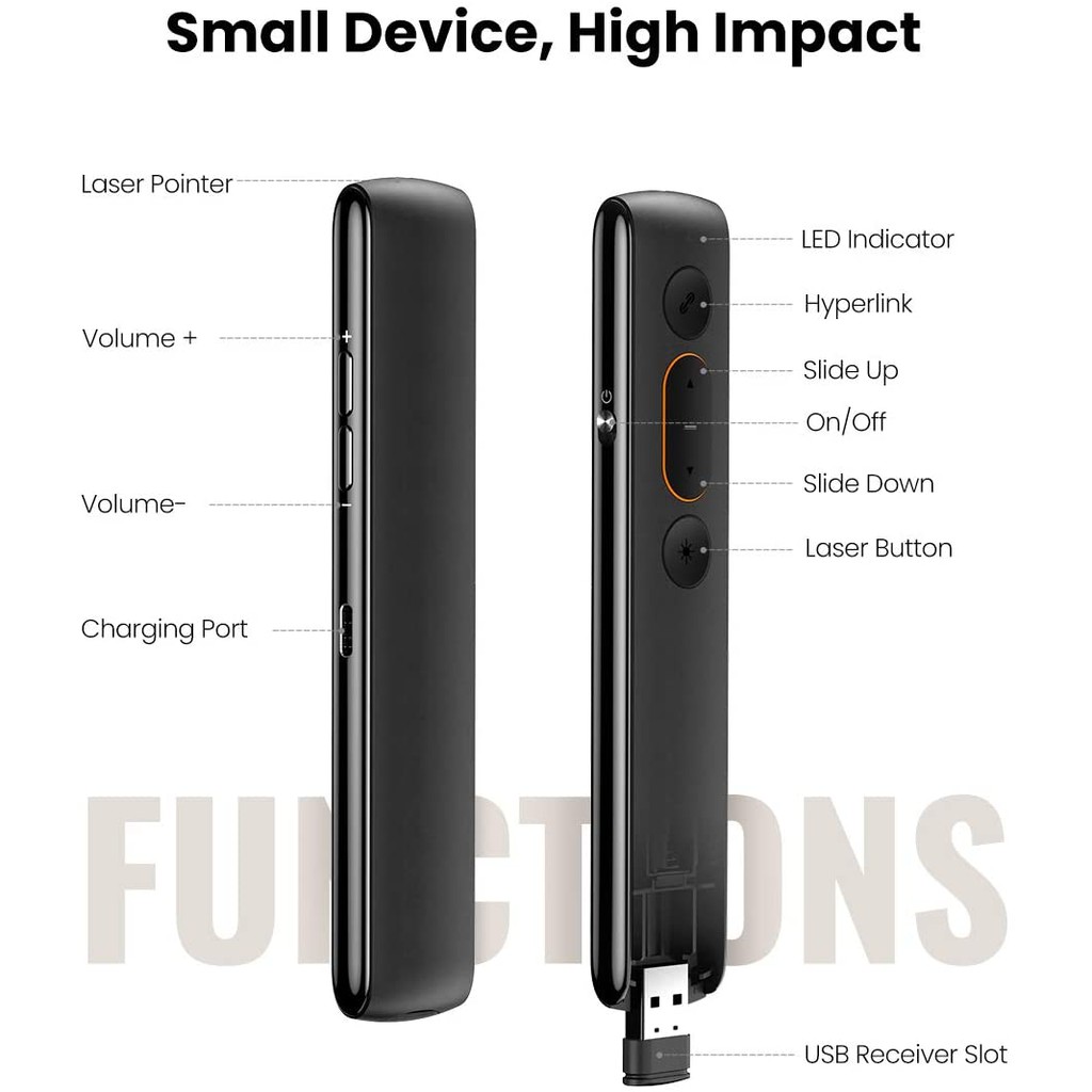 Thiết Bị Điện Gia Dụng > Máy chiếu & Phụ kiện > Bút trình chiếu || Bút trình chiếu PowerPoint Laser hãng UGREEN LP180 60327 không dây điều khiển từ xa 100m (sử dụng pin AAA)Còn hàng
