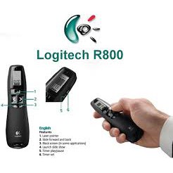 Bút trình chiếu R800 màu xanh/đỏ - bút thuyết trình slide powerpoint cao cấp logitech r800 laser màn hình led