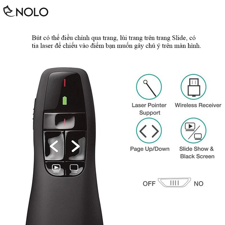Bộ Bút Trình Chiếu Thuyết Trình Model R400 Tương Thích Tốt Cho Win 10 Có Tặng PinGiới thiệu: