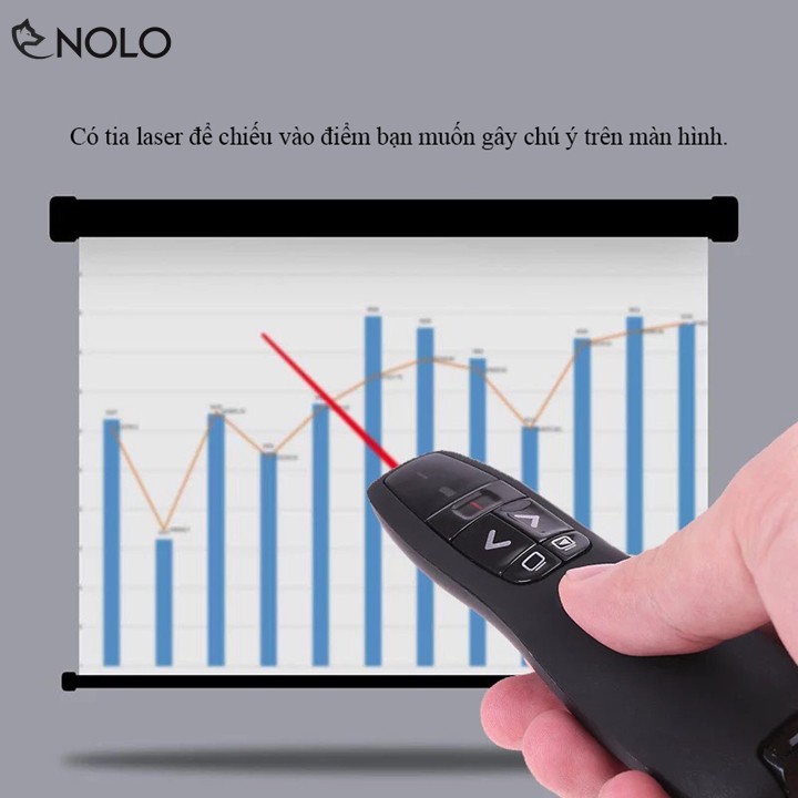 Bút có thể điều chỉnh qua trang, lùi trang trên trang Slide, có tia laser để chiếu vào điểm bạn muốn gây chú ý trên màn hình.