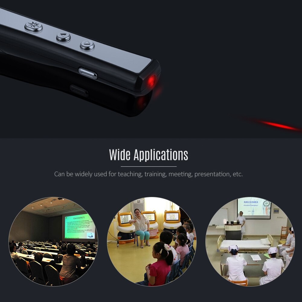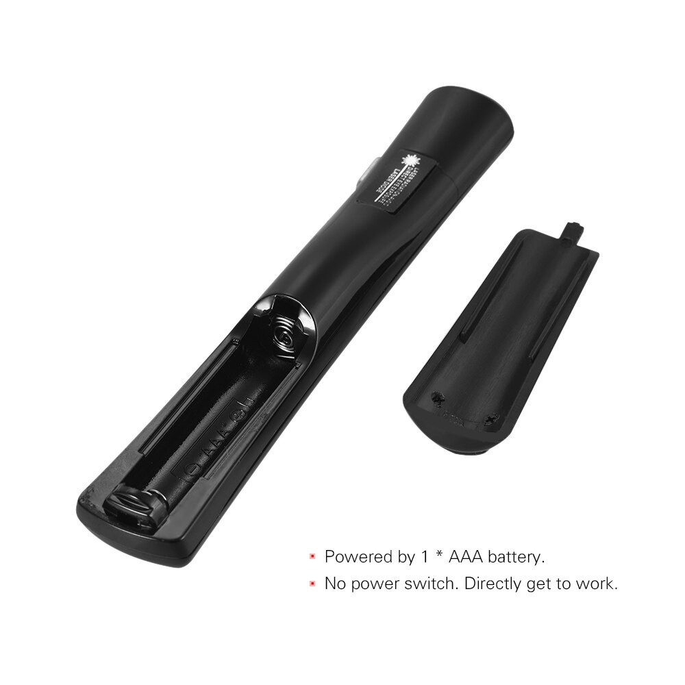 Áp Dụng Công Nghệ Không Dây Hồng Ngoại Với Khoảng Cách Điều Khiển Trên 10M. Khoảng Cách Đèn Laser Trên 200M. Tia Laser Màu Đỏ Và Có Chức Năng Lật Trang, Lên Và Xuống.