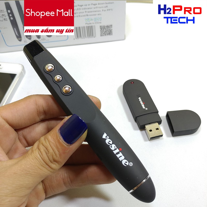 Giới thiệu Bút trình chiếu Vesine VP101 H2Pro, bút chỉ slide cho giáo viên bắt sóng 20m