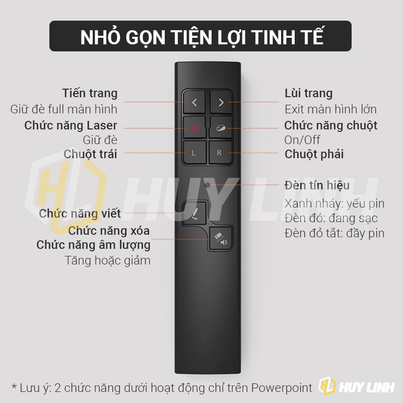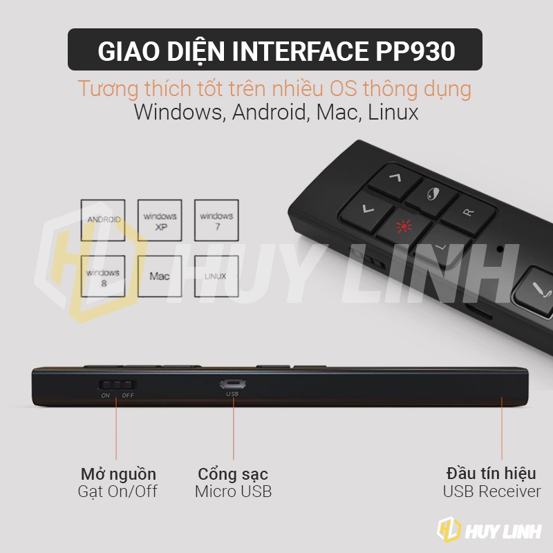 Thông số kỹ thuật bút trình chiếu Viboton PP-930:✔️Tích hợp chức năng : Đèn Laser, Mouse, Điều chỉnh âm thanh