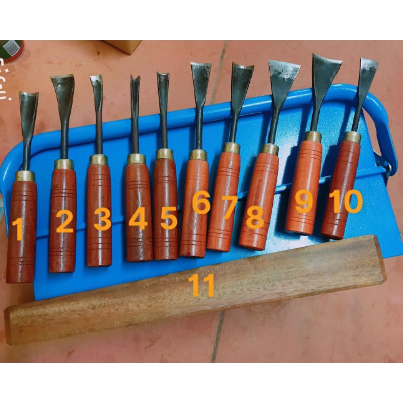 -Bộ đục 10cây kèm 1 dùi Gỗ Nghiến chuyên cho Bonsai và ngành mộc - Tặng kèm Dùi đục gỗ Nghiến- chất thép tốt - thép nguyên khối sắc bén, hàng chính hãng nhà vườn đã sử dụng và kiểm tra chất lượng sản phẩm, nên anh em hoàn toàn yên tâm khi sử dụng. Đảm bảo thời gian sử dụng từ 5-10 năm theo cường độ và cách sử dụng