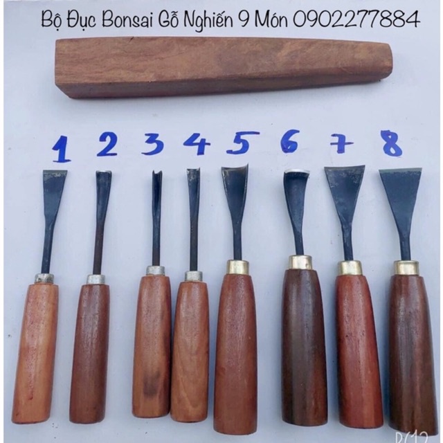 -Bộ đục 8 cây Gỗ Nghiến chuyên cho Bonsai và ngành mộc - Tặng kèm Dùi đục gỗ Nghiến- chất thép tốt - thép nguyên khối sắc bén, hàng chính hãng nhà vườn đã sử dụng và kiểm tra chất lượng sản phẩm, nên anh em hoàn toàn yên tâm khi sử dụng. Đảm bảo thời gian sử dụng từ 5-10 năm theo cường độ và cách sử dụng————-