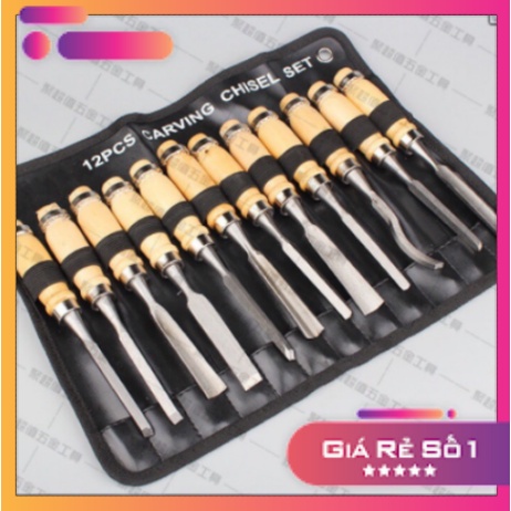 Bộ đục gỗ gồm 12 món khác nhau.Có túi da bảo quản tiện lợi.