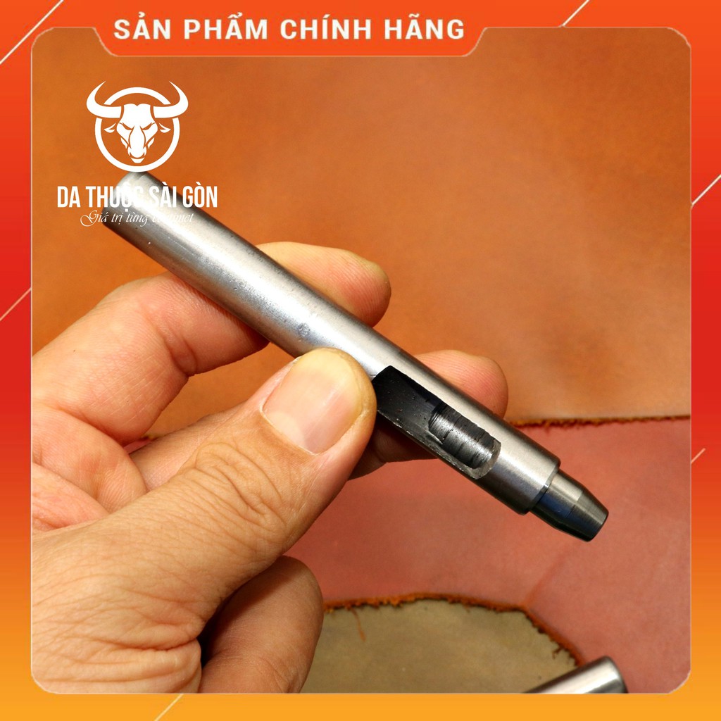 Ứng dụng: Đục lỗ tròn là dụng cụ cần thiết khi chế tác đồ da thủ công. Sản phẩm làm bằng thép cao cấp, có độ cứng cao, được tiện CNC nguyên khối nên độ bền cao, bền gấp nhiều lần so với các loại đục khác đang bán trên thị trường. Chiều dài lỗ đục là 10 mm, đáp ứng được tất cả các loại da hay những sản phẩm có cạnh dày dưới 10 mm như ví da, túi da, giày da, còn đường kính lỗ đục rộng 3mm nên hạn chế bị tắc da trong quá trình sử dụng, điều mà shop ưng ý nhất đó là miệng đục sắc nhọn nên tạo ra các lỗ đục hoàn hảo, mượt mà, dứt khoát giúp đường may thêm phần tinh tế, sang trọng.