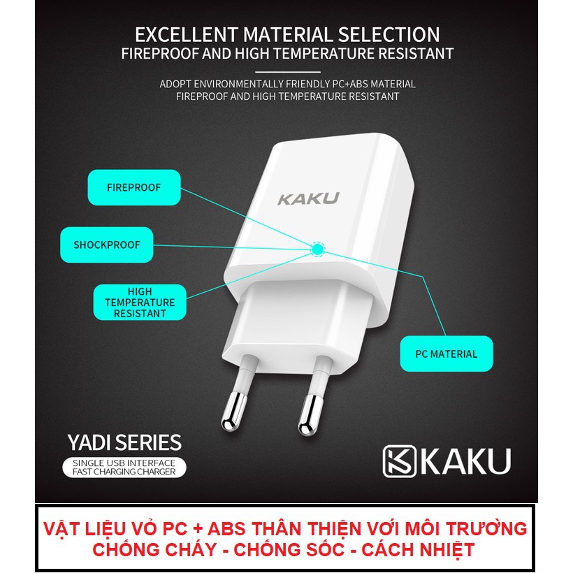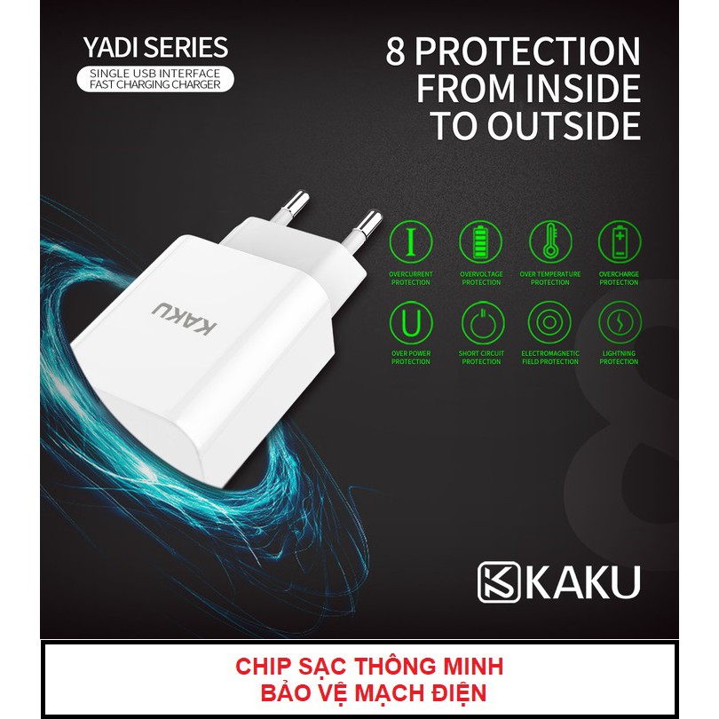 BẢO VỆ TOÀN DIỆN - CHỐNG LỖI MẠCH ĐIỆN TỬ:Củ sạc nhanh KAKU tích hợp con chip thông minh thế hệ mới tự động ngăn chặn các lỗi mạch điện tử: Short circuit(chập mạch), Overload (Quá tải), Overcurent (Quá dòng), Overcharge (nạp quá mức), Undervoltage (Giảm điện áp), Overvoltage (Tăng điện áp). Bạn còn lo gì nữa nào.