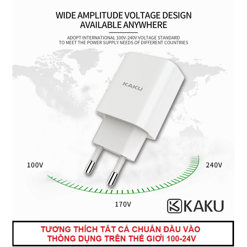 ĐỘ TƯƠNG THÍCH CAO: Có thể sử dụng cho các ổ điện với dải điện áp 100-240V. Nói cách khác bất cứ nơi nào trên thế giới, cốc sạc nhanh KAKU cân hết. Ngoài ra thiết bị nào cũng có thể sử dụng được.