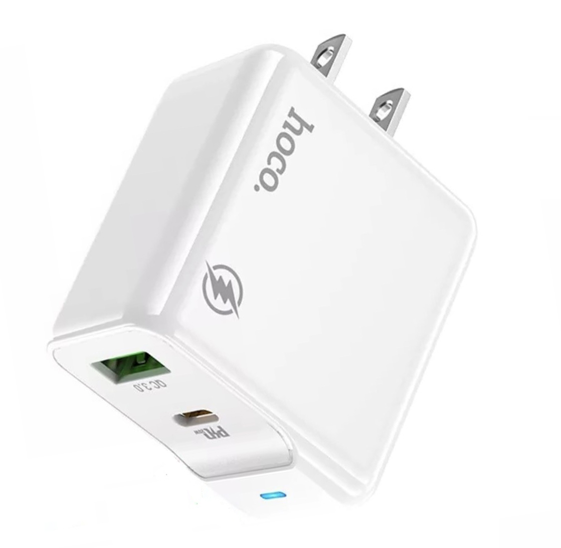 Cốc sạc PD20W Hoco HK27 chân dẹt cổng USB và Type-C , QC3.0 chất liệu chống cháy cao cấp ( 2 màu ) - Hàng chính hãng