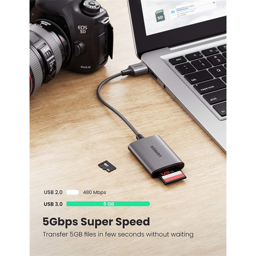 Giới thiệu Bộ đọc thẻ nhớ SD và TF USB3.0 chuẩn hãng UGREEN 80887