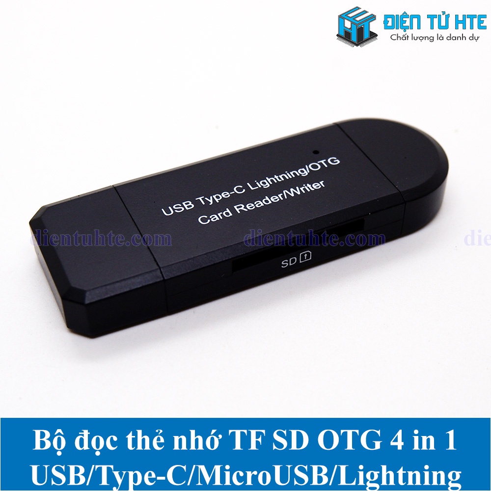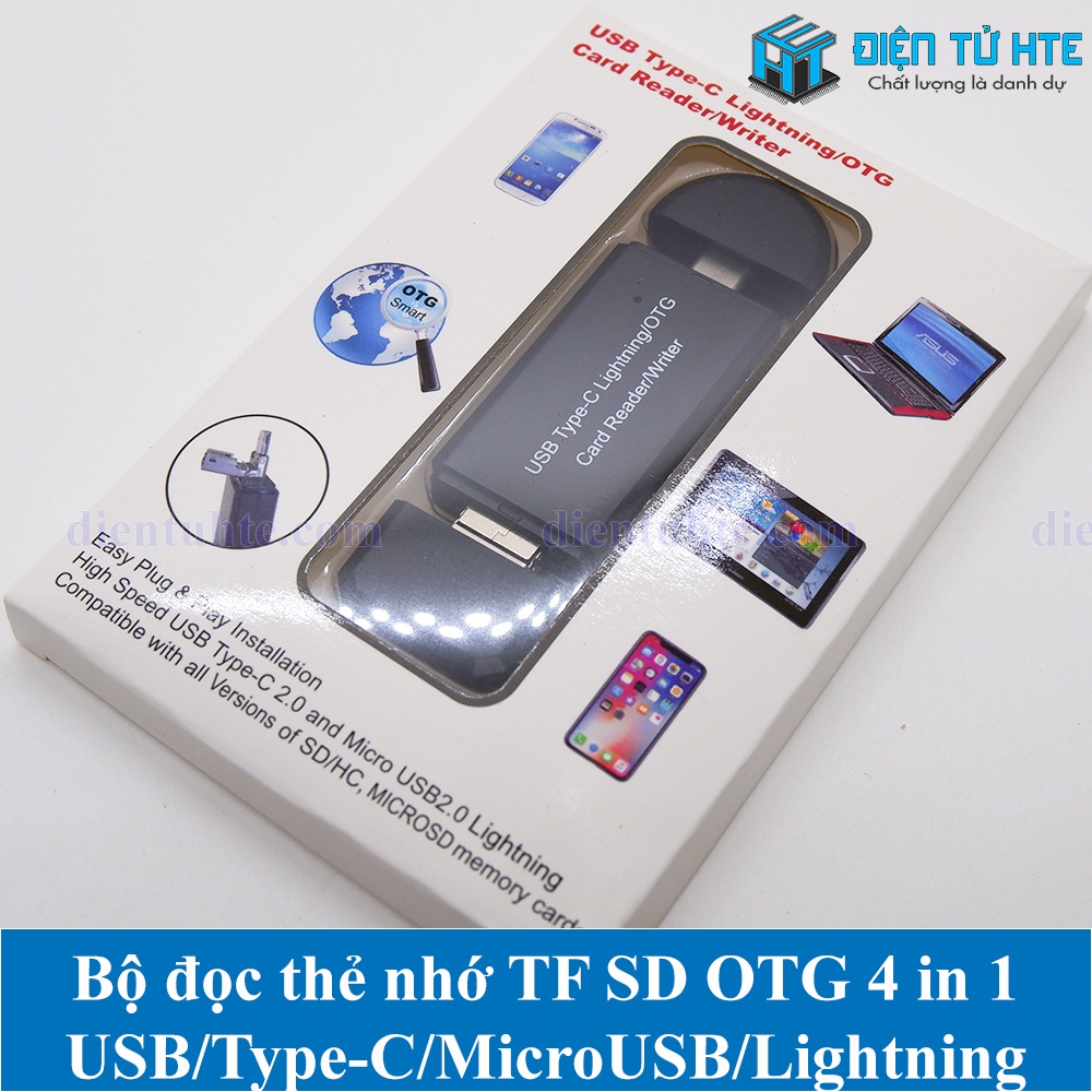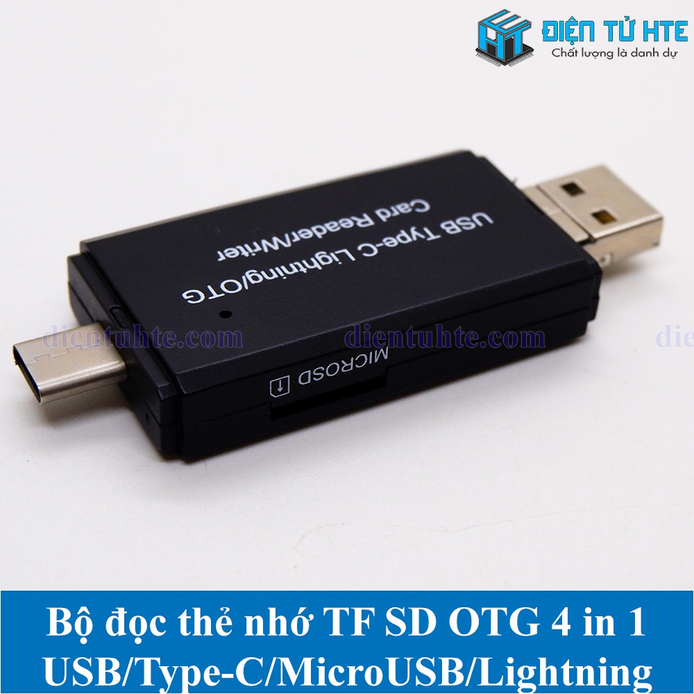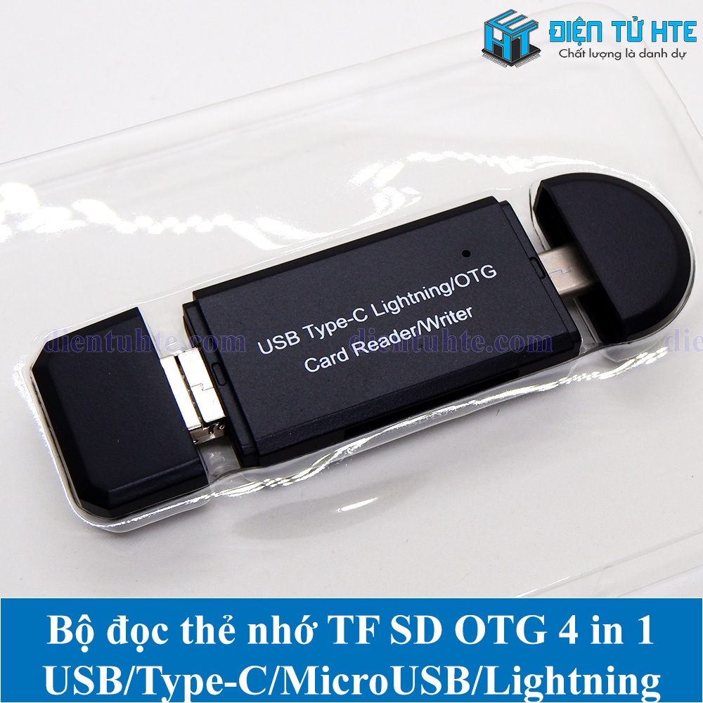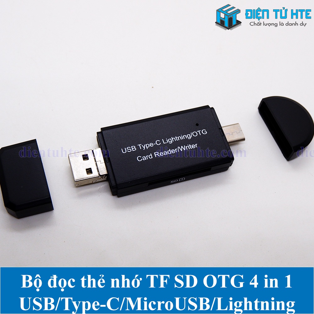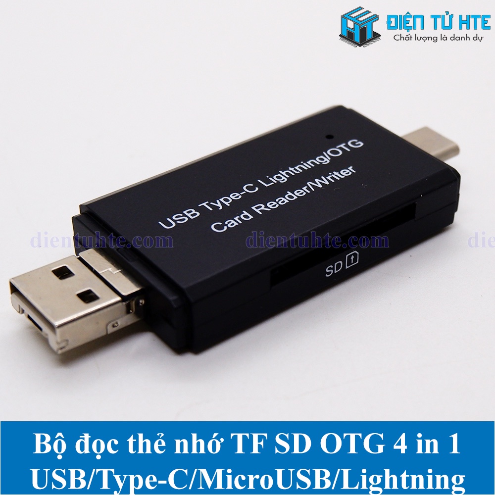 Máy tính & Laptop > Phụ Kiện Máy Tính > Bộ chia cổng USB & Đọc thẻ nhớ || Bộ đọc thẻ nhớ TF SD OTG 4 in 1 USB/Type-C/MicroUSB/Lightning YC-350Còn hàng