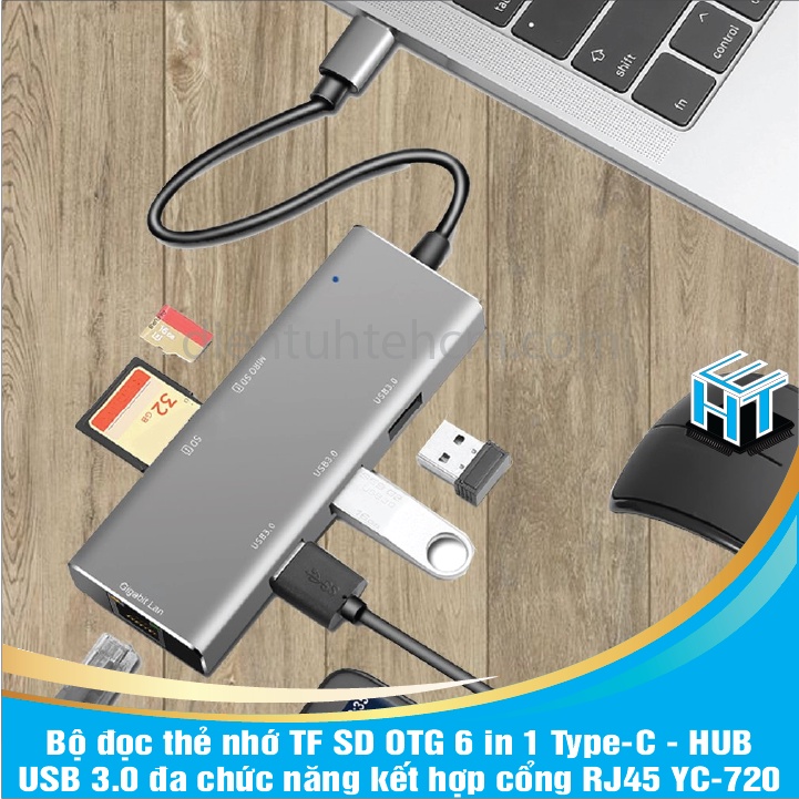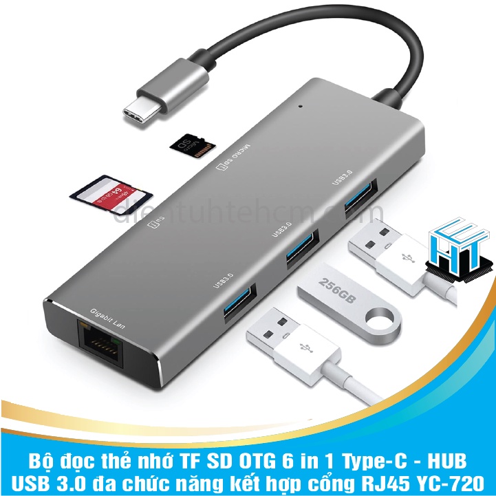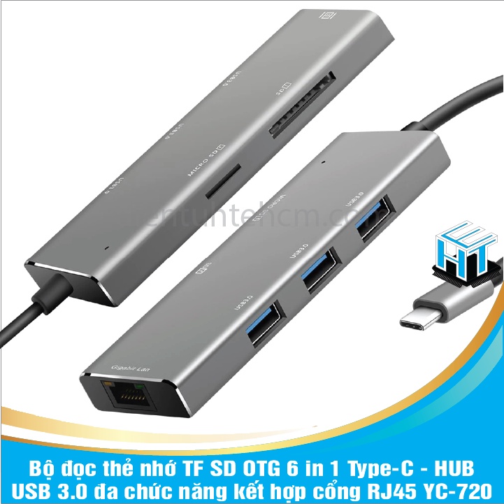 Máy tính & Laptop > Phụ Kiện Máy Tính > Bộ chia cổng USB & Đọc thẻ nhớ || Bộ đọc thẻ nhớ TF SD OTG 6 in 1 Type-C - HUB USB 3.0 đa chức năng kết hợp cổng RJ45 YC-720Còn hàng