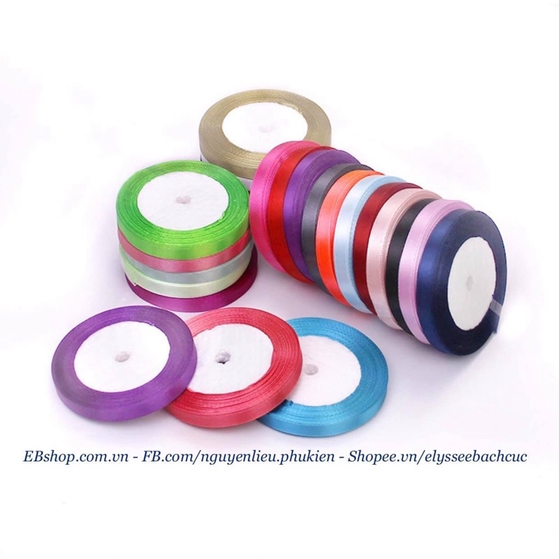 Bản rộng 1cm, cuộn dài 25m.Chất liệu lụa mềm dùng buộc trang trí hộp quà, hộp bánh ...