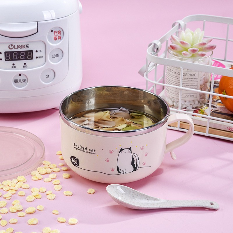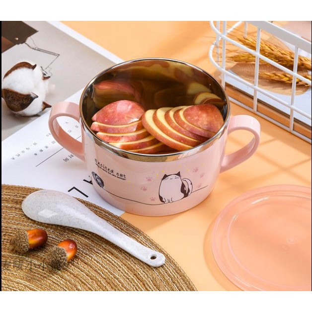 Ca Ăn Mì 2 Lớp Ruột Inox Họa Tiết Ngộ Ngĩnh S8, Tô ăn mỳ giữ nhiệt xinh xắn nhiều mẫu mã