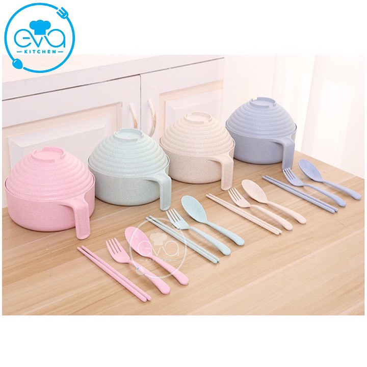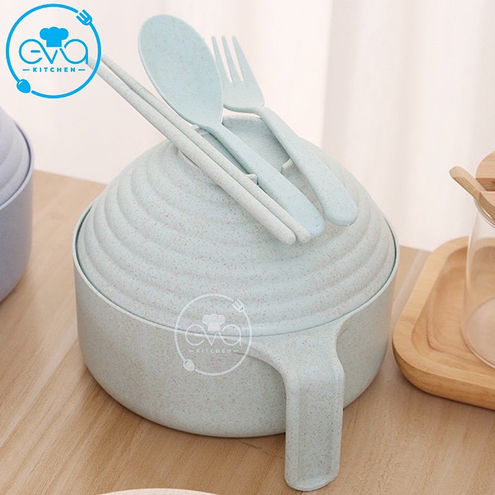 Bộ Ca Ăn Mì Lúa Mạch Có Nắp Tặng Kèm Đũa Muỗng Nĩa Tiện Lợi