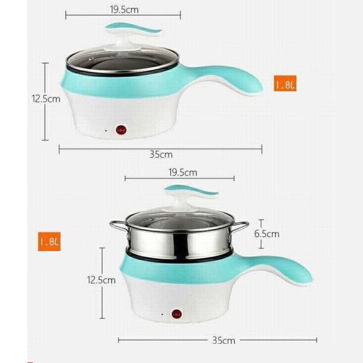 Ca Bếp Điện Đa Năng Mini Siêu Tốc 1.8L Nấu Mì Lẩu Chiên Hấp Tặng Kèm Lồng Hấp Siêu Tiện Lợi