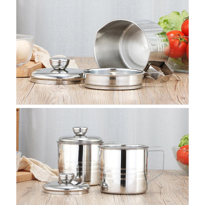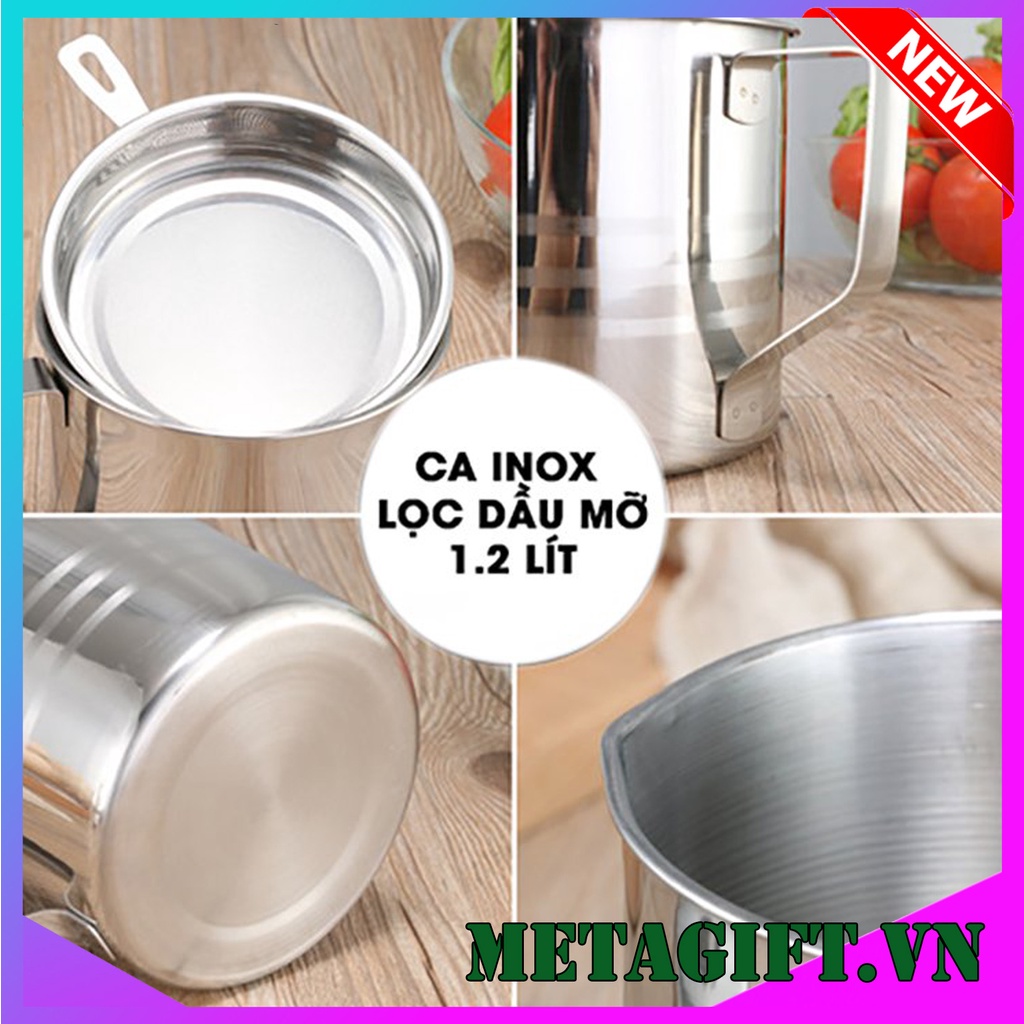Nhà cửa & Đời sống > Dụng cụ nhà bếp > Dụng cụ lọc || Ca bình đựng lọc dầu ăn dầu mỡ bằng Inox 304 1.2L có lưới lọc cặn cao cấp tiện lợiCòn hàng