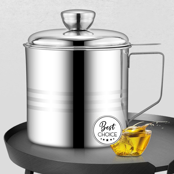 Ca bình đựng lọc dầu ăn dầu mỡ bằng Inox 304 1.2L có lưới lọc cặn cao cấp tiện lợi