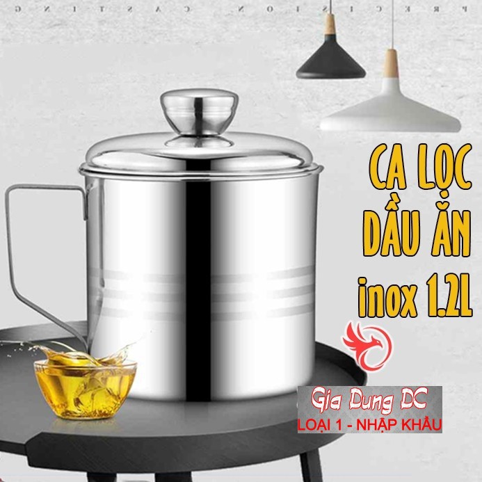 Ca Bình Đựng Lọc Dầu Ăn Dầu Mỡ Bằng Inox 304 1.2L Có Lưới Lọc Cặn Cao Cấp Tiện Lợi