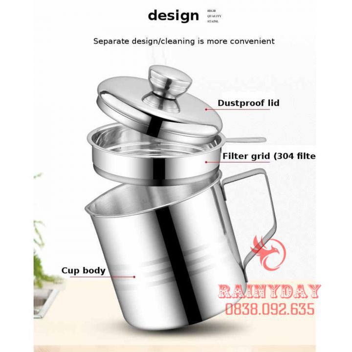 Ca bình đựng lọc dầu ăn dầu mỡ bằng Inox 304 1.2L có lưới lọc cặn cao cấp tiện lợiĐẶC ĐIỂM SẢN PHẨM
