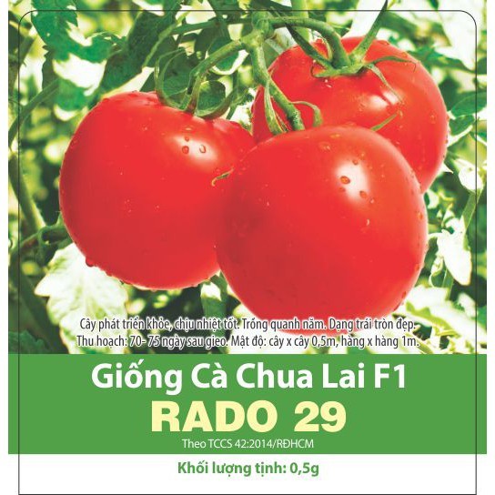 - Đặc điểm: Giống Cà Chua này cho nhiều trái, trái tròn, vai xanh đậm, khi chín có màu đỏ tươi rất đẹp, thịt dày, cứng, vận chuyển xa tốt. Trái nặng từ 120-140gr, cây cho nhiều trái ngay lần đầu thu hoạch, trên cây có thể có từ 80-120 trái và đặc biệt thu hoạch liên tục, có thể kéo dài hơn 30 ngày nếu chăm sóc tốt và hái trái mỗi ngày- Số hạt/gói : 0.5 gr