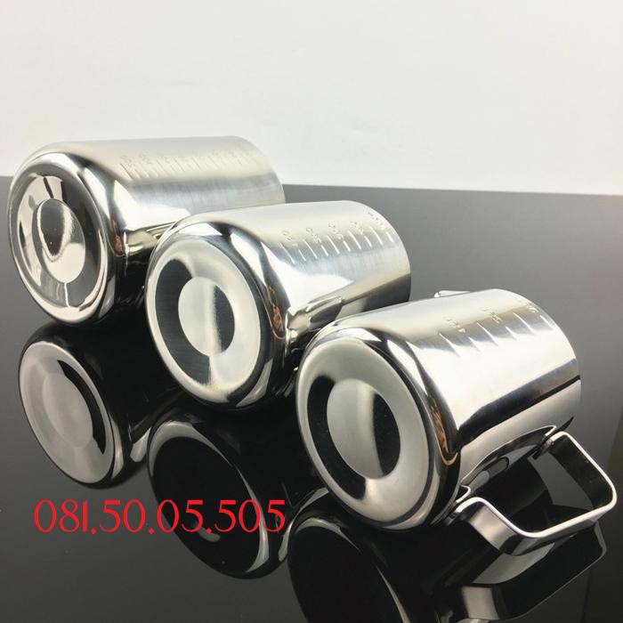 Ca đánh sữa inox (có vạch chia) 350ml - 550ml - 1 Lít- Lọ rắc bột inox Bút vẽ latte Tạo bọt cà phê Khuôn capuchino