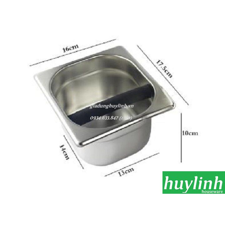 - Hộp đập bã inox được sử dụng để đập bỏ bã cà phê khỏi tay cầm sau khi pha espresso.- Hộp knock box inox này là một trong những dụng cụ cơ bản không thể thiếu của các quán cà phê espresso và các nhà hàng.