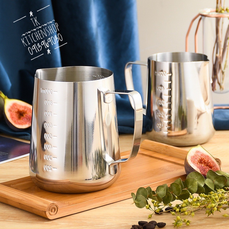 Ca đánh sữa inox có chia vạch 350ml - 550ml - 900ml (100% inox 304cao cấp)