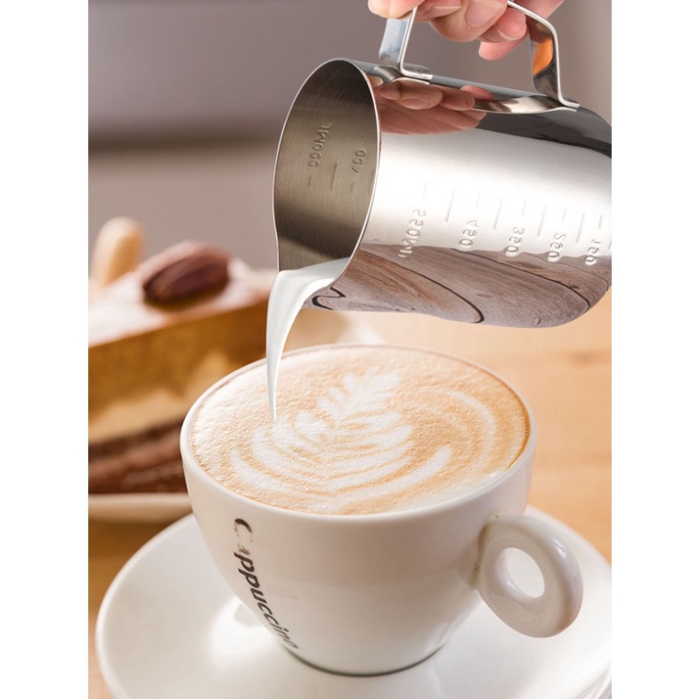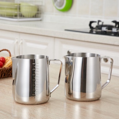 Ca đánh sữa inox (có vạch chia) 350ml - 550ml - 900ml (100% inox 304)