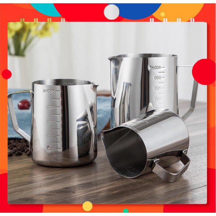 Nhà cửa & Đời sống > Dụng cụ nhà bếp > Dụng cụ pha trà, cà phê || Ca đánh sữa, rót sữa inox có vạch chia 350ml 600ml 1000ml Lọ rắc bột inox Bút vẽ latte Tạo bọt cà phê Khuôn capuchinoCòn hàng