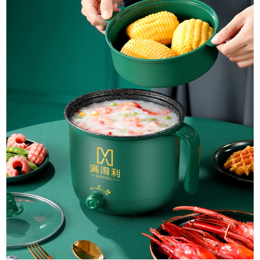 Ca Điện Nấu Mì Đa Năng Chống Dính, Nấu Cơm, Chiên, Luộc, Hấp, Nồi Lẩu Mini, 2 Mức Chỉnh Nhiệt, Tặng Kèm Khay Hấp-----------------------------------------------------------