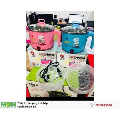 Ca điện nấu mì kiêm nồi lẩu mini siêu tiện lợi 18cm + kèm vỉ hấp trứng, nồi lẩu điện mini