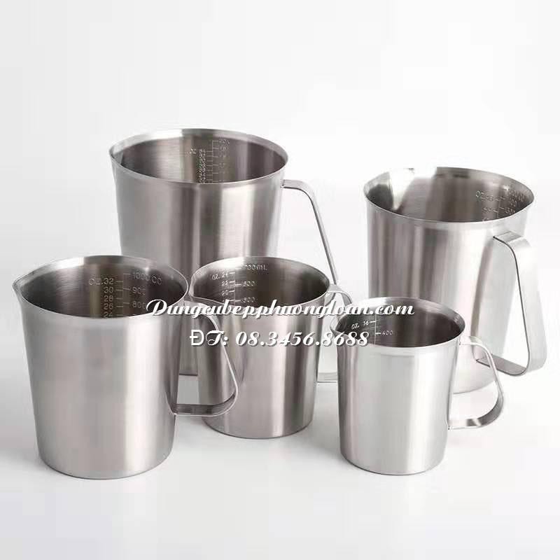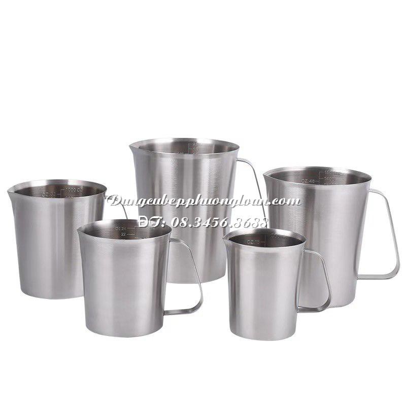 Ca định lượng Inox 304, ca đong inox có vạch chia ml (500m;, 700ml, 1000ml, 1500ml, 2000ml)