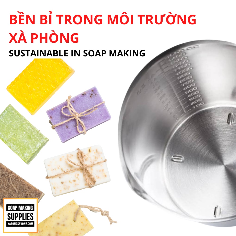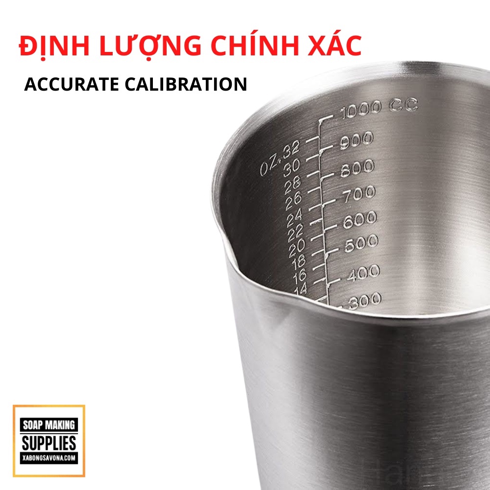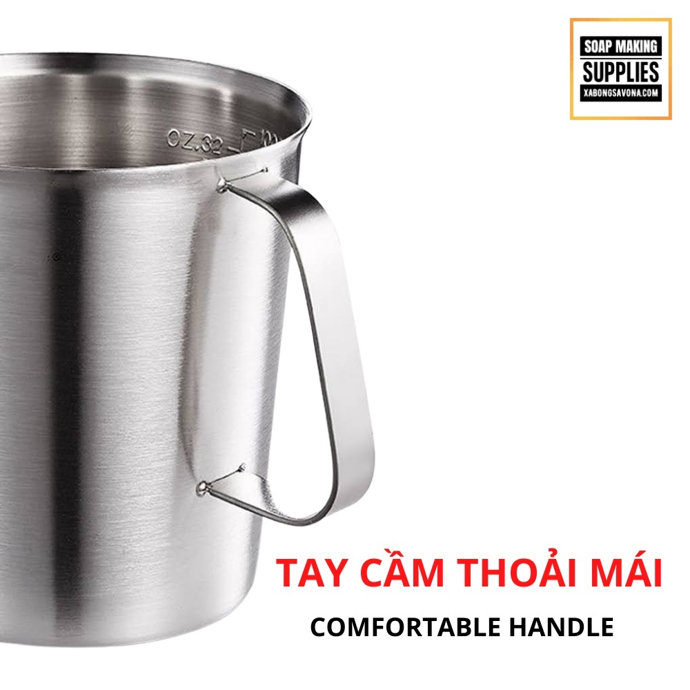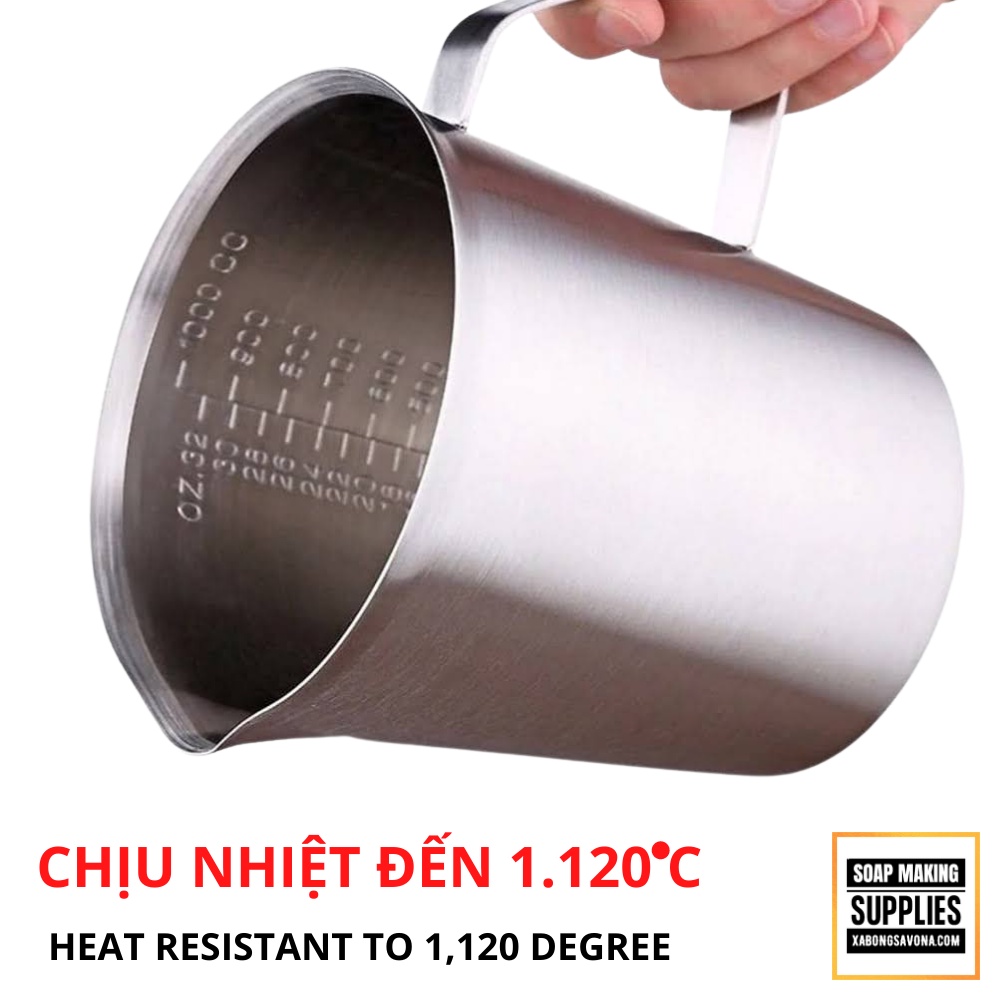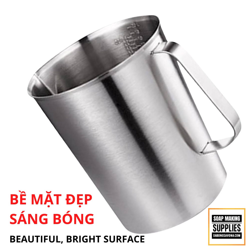CA ĐONG INOX 304 THỂ TÍCH 2 LIT, THÉP KHÔNG GỈ - CA ĐONG LÀM XÀ PHÒNG - CA ĐONG CHỊU NHIỆT CAO - HB-304 THICK STAINLESS STEEL MEASURING CUP SCALE SOAP MAKING- Chất liệu: inox 304