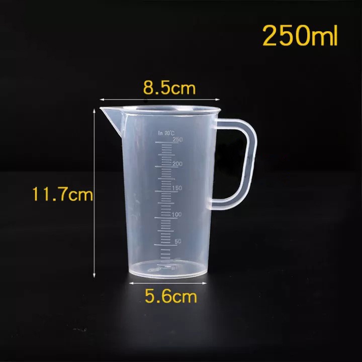 Ca đong 250ml có đường kính 9cm, cao 8cm, ca đong 500ml có đường kính 9cm, cao 12cm thiết kế vừa tay cầm. Ca đong nhựa vạch đỏ dùng để đong nước, sữa, nước cốt dừa chính xác, giúp bạn chế biến những chiếc bánh hoàn hảo theo đúng công thức, bởi nếu trộn sai tỉ lệ, chiếc bánh bạn làm ra có thể không đúng vị hoặc bị hỏng.