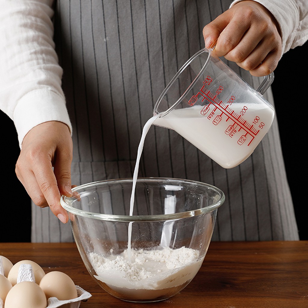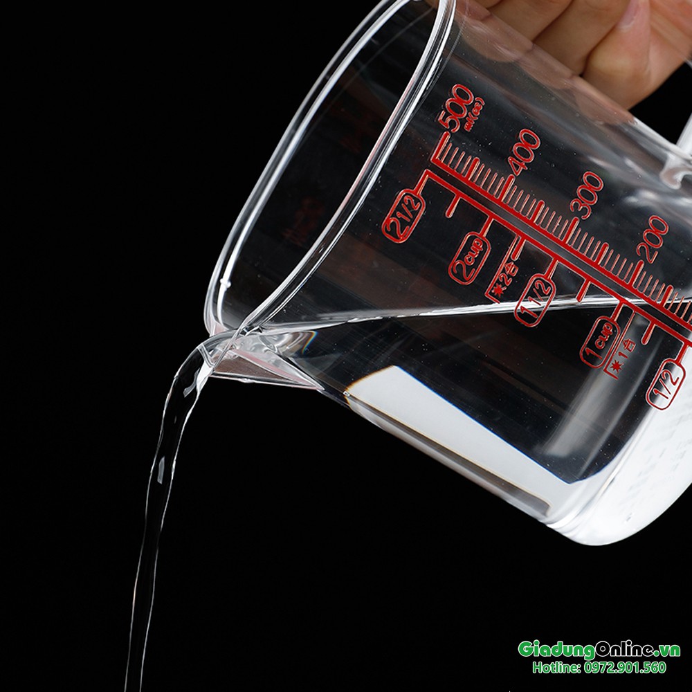 - Cốc đong dung tích 500ml, vạch chia nhỏ nhât là 50ml.