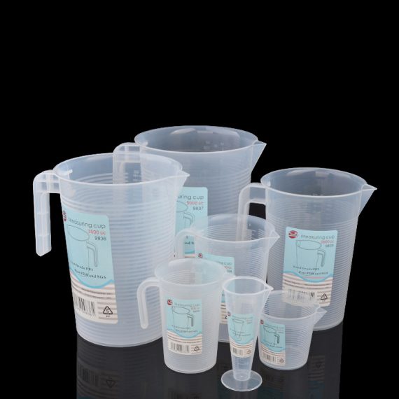 Giới thiệu Ca đong nhựa 50ml/100ml/250ml/500ml/1000ml/2000ml làm bằng nhựa tố, vạch chia rõ ràng, chính xác và có tay cầm tiện dụng