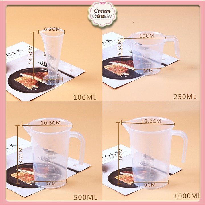 Ca đong nhựa / ly đong / cốc đong định lượng nguyên liệu 100ml-250ml-500ml-1000ml Mẫu 2