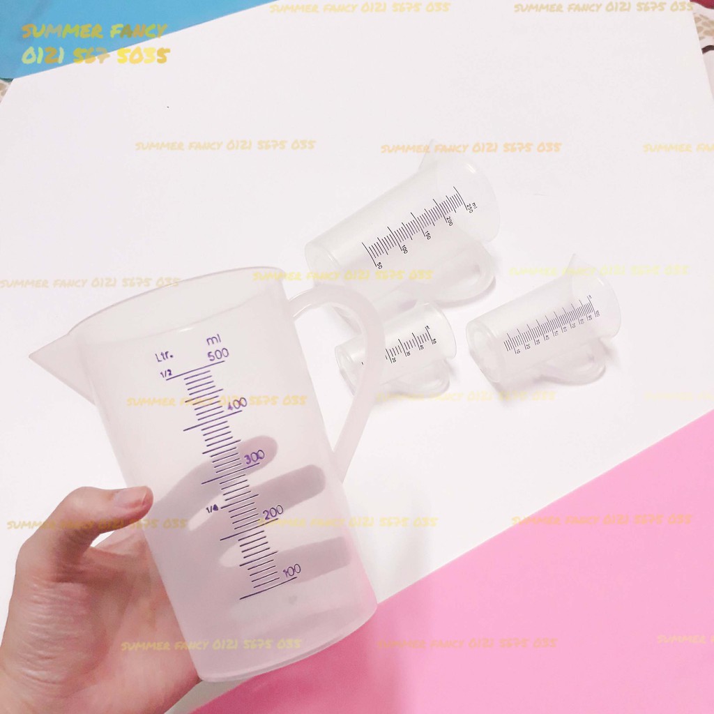 Ca Đong Nhựa Có Vạch Chia Định LượngChất liệu: nhựa trong, vạch đo sơn màu tím