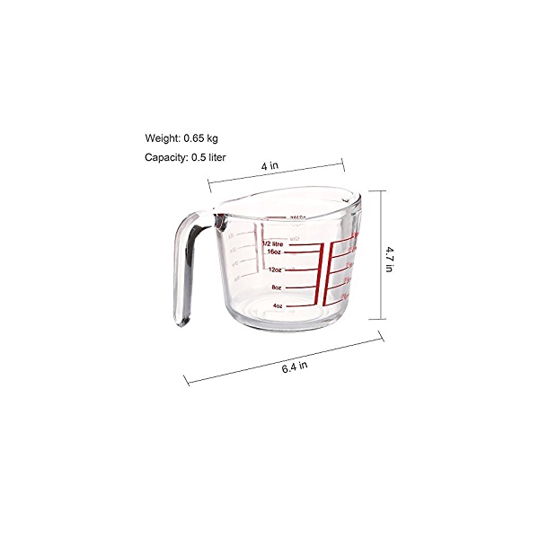 Ly Thuỷ Tinh Chia Vạch Đo Lường Chia Ml Đo Lường 500 ML Có Mỏ RótMô tả Cốc thuỷ tinh chia ML đo lường